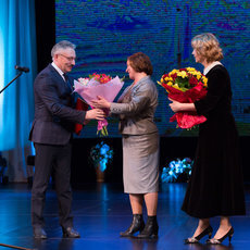 Бурными аплодисментами публика приветствовала заместителя главы города Александра Пелевина. Александр Рудольфович всегда активно работал с институтом и способствовал его становлению и развитию. В этот вечер он поделился воспоминаниями, поблагодарил Людмилу Коваленко и всех сотрудников медицинского за неоценимый вклад в социально-экономическое развитие города и региона.
