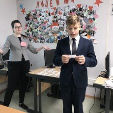 Тема профориентационного образовательного проекта – «English around us». Данный проект проводился 25 апреля текущего года в рамках сотрудничества «вуз-школа» с учащимися гимназии «Лаборатория Салахова» в ИГОиС.