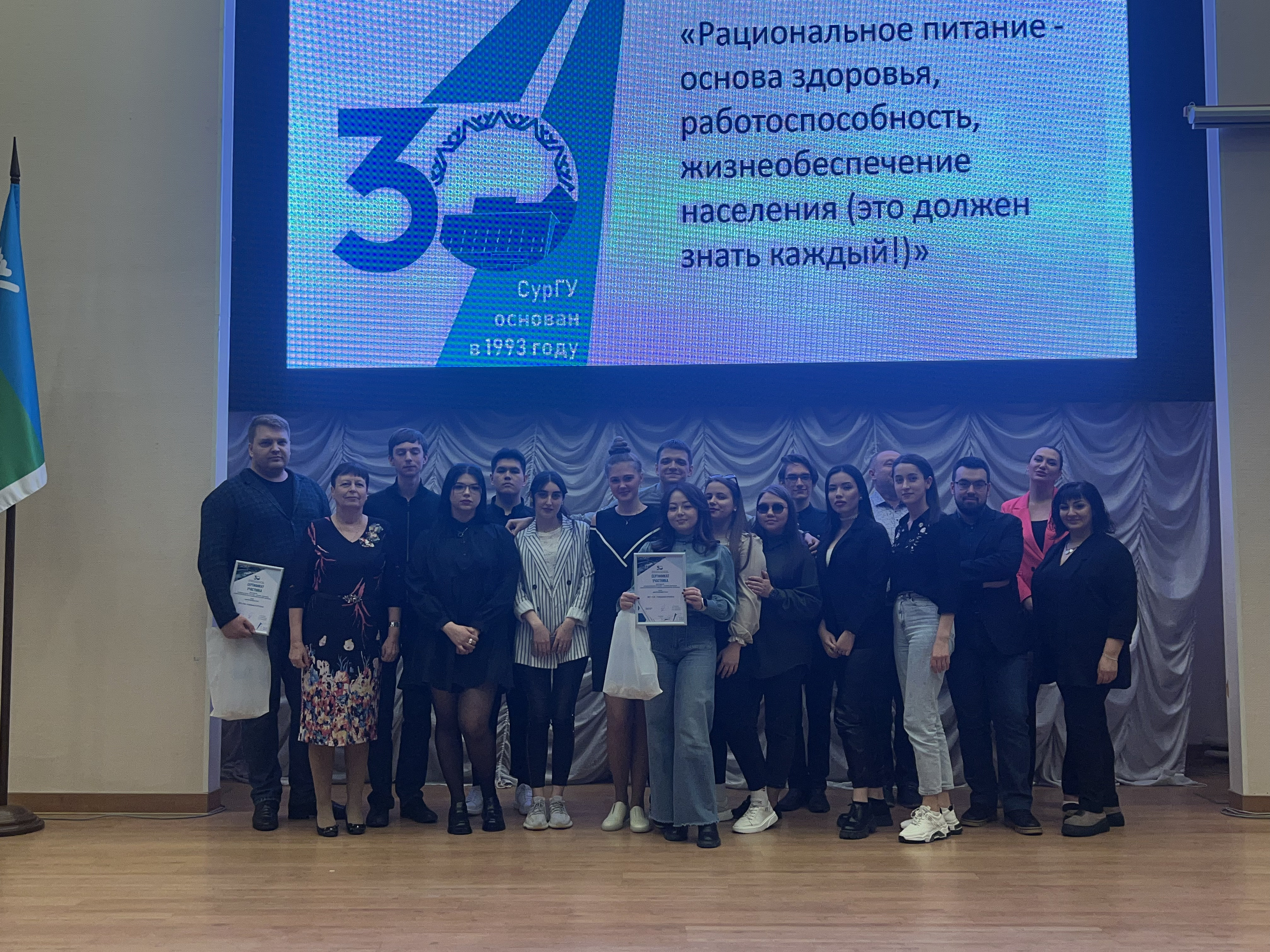 25 марта в конференц-зале Гуманитарного корпуса СурГУ успешно завершил работу Фестиваль для студентов Медицинского института, Медицинского колледжа и всех желающих студентов, преподавателей, а также жителей города «Рациональное питание – основа здоровья, работоспособности и жизнеобеспечения человека (это должен знать каждый!)», организованный преподавателями курса гигиены кафедры морфологии и физиологии С. В. Болотовым, В. С. Павловской, преподавателями Медицинского колледжа Е. Б. Павловским, Е. В. Алехиной в рамках плеяды мероприятий к 30-летию создания университета. На фестивале присутствовало более 200 человек.