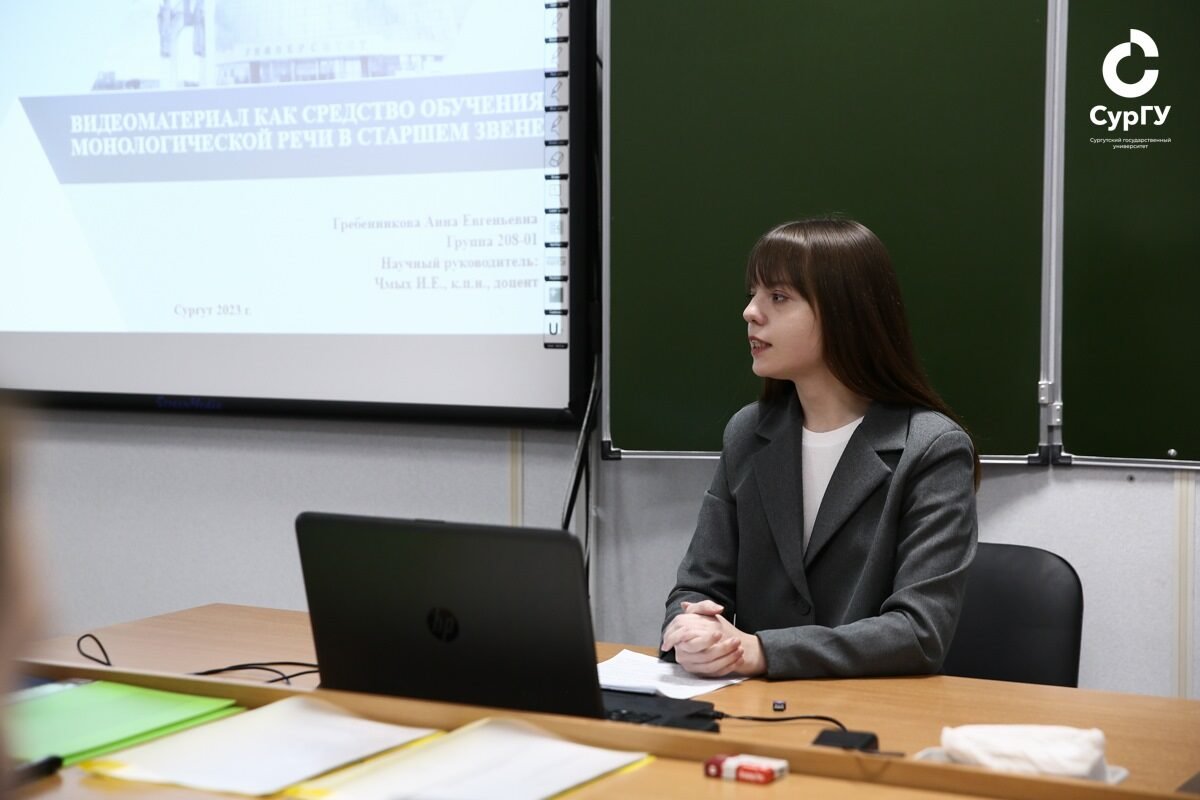 Проблемы перевода метафор и передачи художественных средств при переводе, а также вопросы преподавания иностранного языка в школах затронули на секции «Лингвистика и межкультурная коммуникация», проходившей в главном корпусе СурГУ. Всего на ней было представлено 14 докладов. Магистрант Вадим Панков в своем исследовании анализировал особенности перевода фразеологизмов с английского языка на русский на примере сопоставления трех переводов романа Стивена Кинга «Инсомния». Затронули и ряд педагогических вопросов. Так, Анна Гребенникова, студентка 4-го курса, на материале сериала «Игра родом из Англии» (2020) исследовала возможность использования видеофрагментов в учебном процессе с целью обучения школьников монологической речи, которой в некоторых учебно-методических комплексах уделено мало внимания.