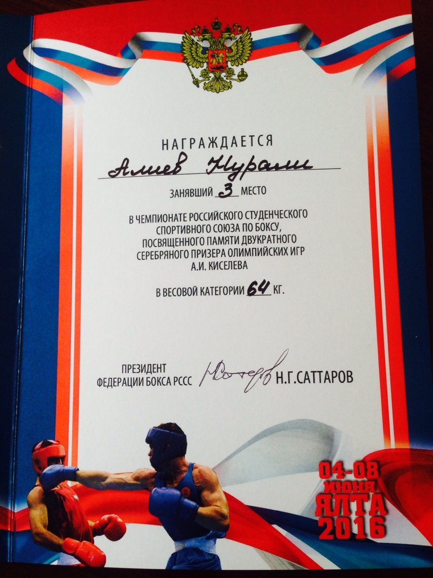 С 03 по 08 июня 2016 г. в Ялте прошел Чемпионат Российского студенческого спортивного союза по боксу, посвящённый памяти двукратного серебряного призёра Олимпийских игр Алексея Киселёва.