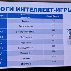 1-е место – «Весёлые спортики» (ИЕиТН команда 1), в составе: Шведенко Дарья, Клысов Шамиль, Ковалева Ульяна, Магамедова Завижат, Полежай Валентина, Великанов Никита.