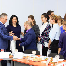 Перед началом разговора Ярослав Мищенко, председатель студенческого совета университета, представил Сергею Михайловичу всех, кто пришел на встречу. Это были председатели советов институтов и общежитий, ассоциаций и клубов, их заместители — те, кто успешно совмещает обучение профессии с внеучебной работой.