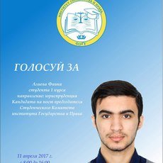 Я могу стать достойным председателем, потому что я ответственный и готов тратить свое время для улучшения общественной деятельности в своем институте, во мне ярко выражены лидерские качества. Я люблю свой институт и готов развивать его в новых направлениях.