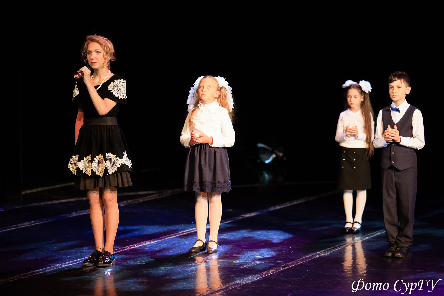 Вокализ в исполнении ансамбля «Альтус», чтение стихотворений, видео- и фотокадры с места трагедии погрузили зрителя в ужас Дня знаний в Беслане. Многие из присутствующих в зале не могли сдержать слез.