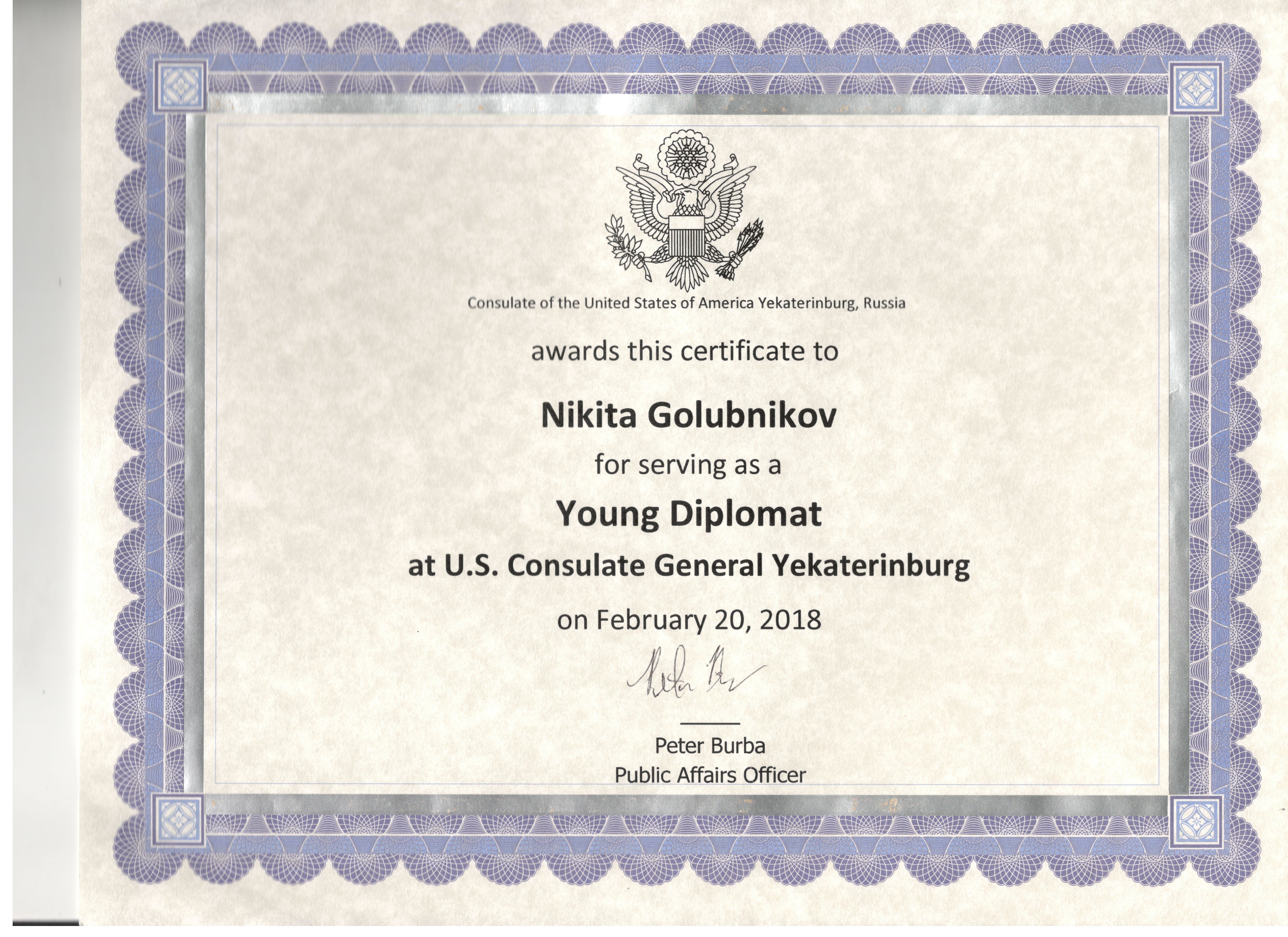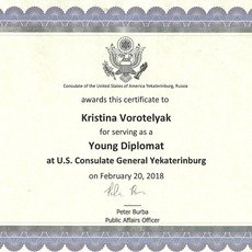 Студенты Института гуманитарного образования и спорта факультета лингвистики Кристина Воротеляк, Анастасия Есипова, Гюнай Галандарова, Никита Голубников и Роксана Хачатрян получили уникальную возможность представить наш университет и познакомиться с работой дипломатов Генерального консульства США в Екатеринбурге.