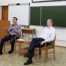 20 февраля в университете впервые прошел батл, в котором сошлись одни из лучших выпускников СурГУ — Ринат Салахутдинов и Сергей Антонов. Будучи кандидатами экономических наук, каждый нашел для себя занятие по душе — один ушел с головой в бизнес, открыв в городе кроссфит-зал и сеть аптек, другой — построил успешную карьеру в Центре культуры и досуга «Камертон» (ООО «Газпром трансгаз Сургут»), став руководителем учетно-контрольной группы. Но что же все-таки лучше — заниматься бизнесом или пойти по протоптанной дорожке, выбрав работу по найму? На этот вопрос и предстояло ответить двум опытным и талантливым выпускникам.