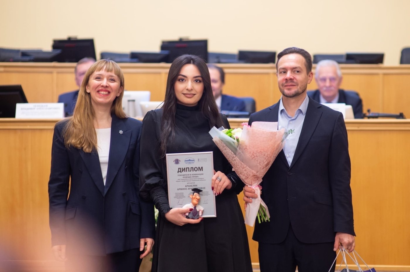 «В этом году в конкурсе приняли участие 230 юристов Тюмени, юга Тюменской области, Ханты-Мансийского автономного округа – Югры, Ямало-Ненецкого автономного округа, из них 90 студентов юридических вузов региона. По результатам отборочного тура конкурсная работа нашей студентки стала одной из лучших и вышла в финал. В ходе финального этапа участники решали кейсовые задания и готовили устное выступление по выданной им теме. Награждение победителей и призеров проходило в Тюменской областной думе и было приурочено ко дню юриста. Аракелян Армине наградили как лучшую среди студентов дипломом победителя в номинации «Будущее права» и специальным призом от ООО «полное ПРАВО» и Тюменской областной думы», – прокомментировала заместитель директора Института государства и права Лариса Попова.