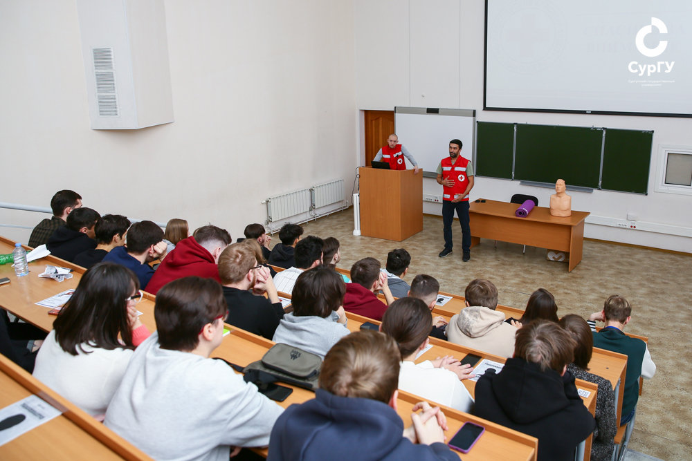 Занятие состояло из теоретической и практической части. Теоретическая была сосредоточена вокруг оказания первой медицинской помощи пострадавшим при пожаре. Студентам напомнили о правилах оказания сердечно-легочной реанимации, а также о том, что можно и чего нельзя делать при термических ожогах. Проводили мастер-класс по первой помощи представители регионального отделения Российского красного креста.