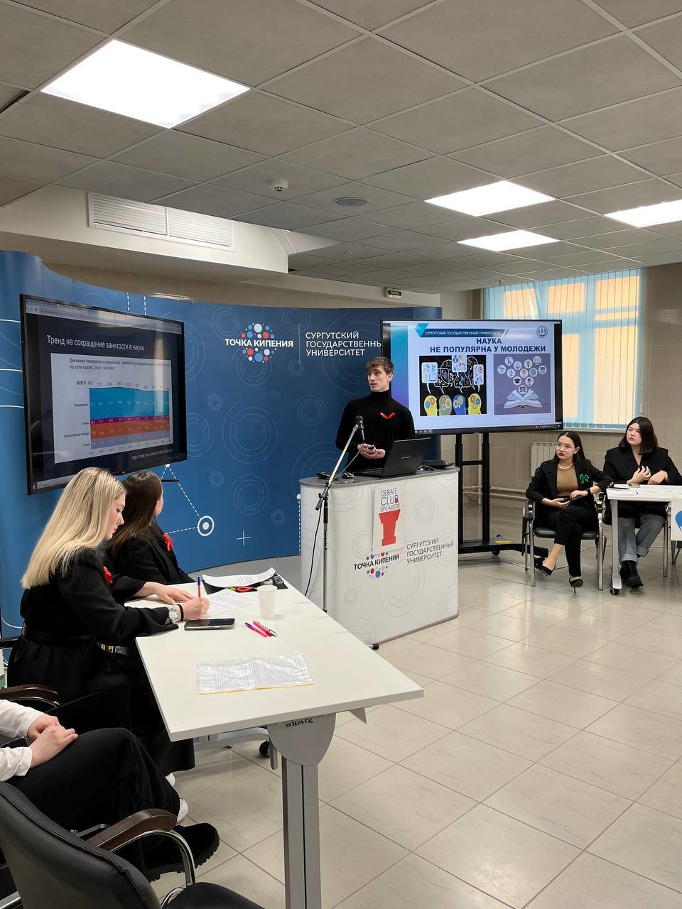 Клуб дебатов «Спикер» объединяет представителей студенческих научных обществ СурГУ и активно участвует в I зимней студенческой научной школе