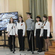 В перерывах между ответами на вопросы разной сложности были музыкальные паузы на военную тему, подготовленные студентами второго курса направления «лингвистика». Студенты: Карина Ревенок, Максим Дмитренко, Вероника Гизатова, Екатерина Добросельская, Камилат Чистякова, Мария Попова, Софья Гончарук – исполнили песни военных лет «В землянке» (музыка Константина Листова, стихи Алексея Суркова) и «Темная ночь» (музыка Никиты Богословского, стихи Владимира Агатова). Трогательное исполнение и инсценировка песни «Темная ночь» студентами: Денисом Кривелевым, Гюнель Бадаловой, Викторией Рыбалко, Камилат Чистяковой – не оставили равнодушными никого в зале – пели все.